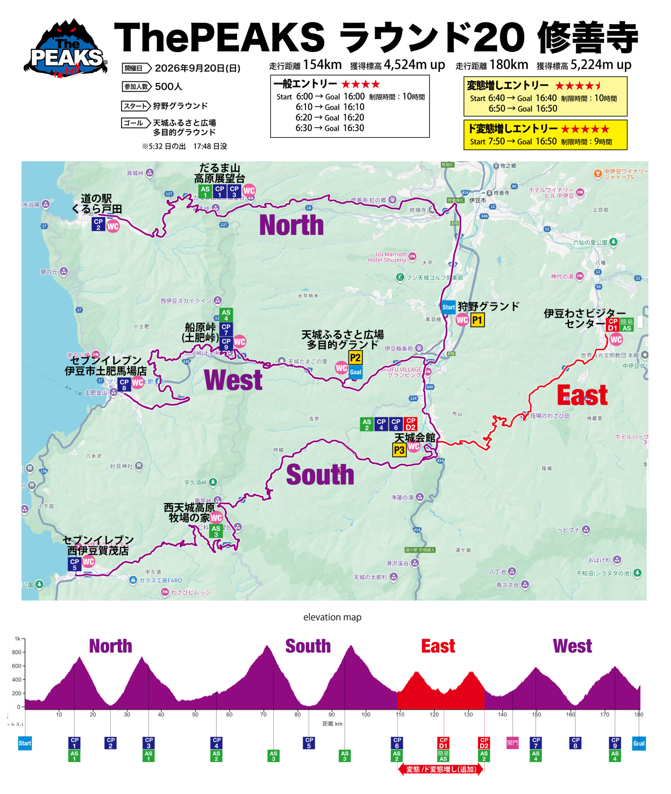 | C.ド変態増しエントリー | 7:50スタート (9時間) 180km/5,224m up |